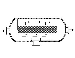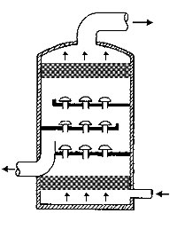 在通常的化工操作中所碰到的氣體中分散液滴的直徑約在0.1~5000μm。一般粒徑在100μm以上的顆粒因沉降速度較快,其分離問題很容易解決。通常直徑大于50μm的液滴,可用重力沉降法分離;5μm以上的液滴可用慣性碰撞及離心分離法;對于更小的細霧則要設法使其聚集形成較大顆粒,或用纖維過濾器及靜電除霧器。絲網(wǎng)除沫器,其主要用于分離直徑大于3μm~5μm的液滴,工作原理如右圖所示。當帶有霧沫的氣體以一定的速度上升,通過架在格柵上的金屬絲網(wǎng)時,由于霧沫上升的慣性作用,使得霧沫與細絲碰撞而粘附在細絲的表面上。細絲表面上的霧沫進一步擴散及霧沫本身的重力沉降,使霧沫形成較大的液滴沿著細絲流至它的交織處。由于細絲的可濕性、液體的表面張力及細絲的毛細管作用,使得液滴越來越大,直至其自身的重力超過氣體上升的浮力和液體表面張力的合力時,就被分離而下落,流至容器的下游設備中。只要操作氣速等條件選擇得當,氣體通過絲網(wǎng)除沫器后,其除沫效率可達到97%以上,可以達到完全去除霧沫的目的。絲網(wǎng)除沫器(除霧器)用于分離塔中氣體夾帶的液滴,以保證有傳質(zhì)效率,降低有價值的物料損失和改善塔后壓縮機的操作,一般多在塔頂設置絲網(wǎng)除沫器�?捎行コ�3--5um的霧滴,塔盤間若設置除沫器,不僅可保證塔盤的傳質(zhì)效率,還可以減小板間距。所以絲網(wǎng)除沫器主要用于氣液分離。亦可為空氣過濾器用于氣體分離。此外,除沫器絲網(wǎng)還可作為儀表工業(yè)中各類儀表的緩沖器,以防止電波干擾的電子屏蔽器等。在化工工藝過程中,各種氣液相接觸設備的氣體離開設備時往往夾帶著不少液滴,如塔類設備、蒸發(fā)器等。一般要求把氣體中夾帶的液滴分離出來,以免影響氣體的品質(zhì)或下道工序的操作。從氣體分離液滴或霧沫的機理有重力下降、慣性碰撞、離心分離、布朗運動的擴散沉積和靜電吸引。絲網(wǎng)除沫器是屬于慣性碰撞除沫中的典型產(chǎn)品,是一種高效的氣液分離設備。它具有除沫效率高、結(jié)構簡單、空隙率大、壓力降小、重量輕,安裝、操作、維修方便等特點。當氣體自下而上通過絲網(wǎng)除沫器時,由于慣性作用與絲網(wǎng)表面碰撞,霧沫隨即在細絲表面聚集而擴張,不斷變大的液滴由于重量產(chǎn)生的重力超過氣速和液體表面的張力的合力時,液滴就下落。工業(yè)上常用于塔器、蒸發(fā)器和分離器等。
